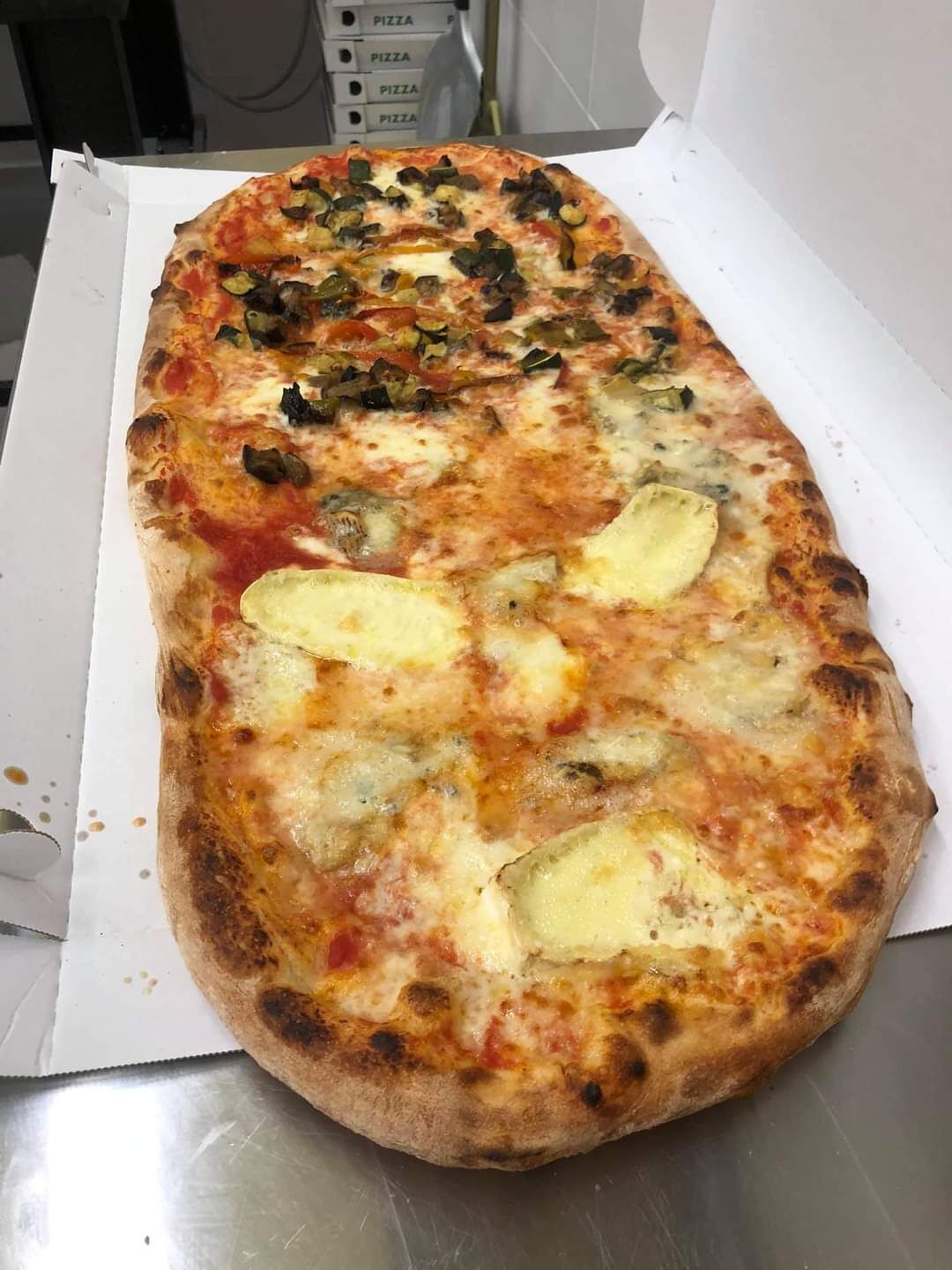 La Pizza o PAnuozzo Beniamino: mozzarella, stracciatella, crema di zucca e prosciutto crudo, grana e basilico